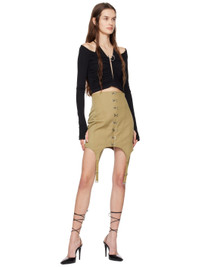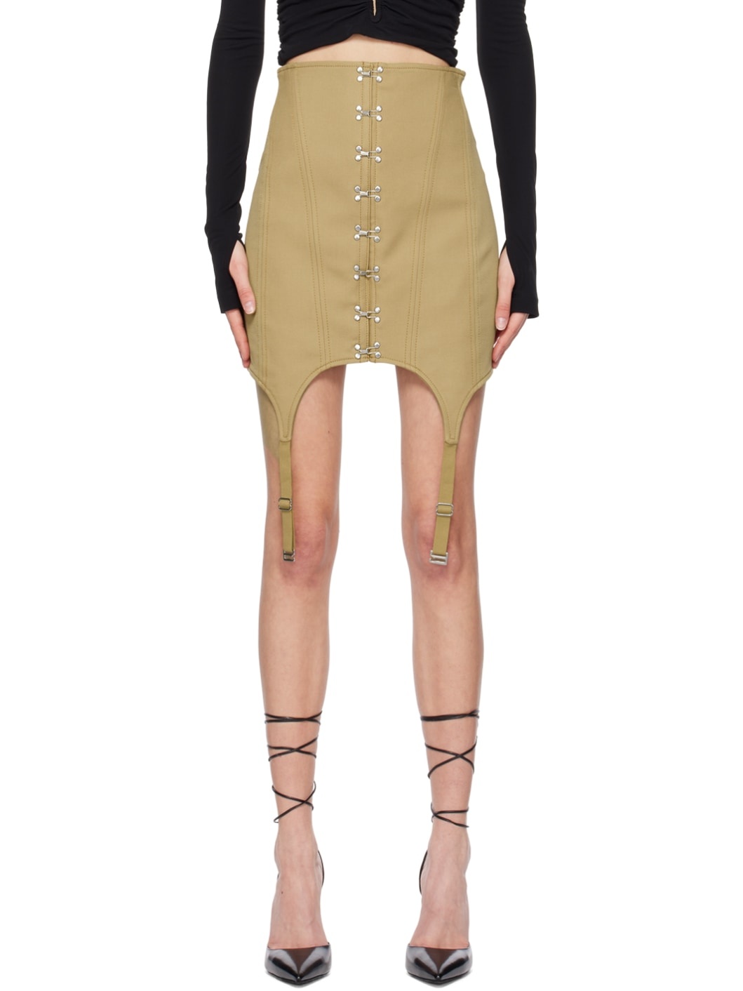 Knit stretch viscose-blend and stretch organic cotton drill skirt. · Paneled construction · Hook-eye closure at front · Adjustable elasticized garter straps at hem Supplier color: Khaki Body 1: 98% organic cotton, 2% elastane. Body 2: 84% viscose, 12% nylon, 4% elastane. Made in Poland 231417F090002