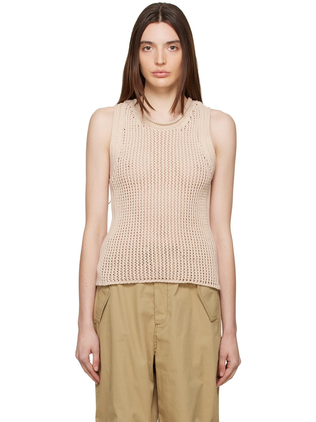 Sheer cotton mesh tank top. · Rolled edge at round neck · Rib knit side seams and armscyes Supplier color: Ivory 100% cotton. Made in Turkey 231417F111014