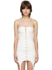 Stretch organic cotton twill camisole. · Off-the-shoulder construction · Darts at chest · Integrated wire at open front · Zip closure at back Supplier color: Ivory Body: 98% organic cotton, 2% elastane. Lining: 50% cotton, 45% polyester, 5% elastane. Made in Poland 231417F111027