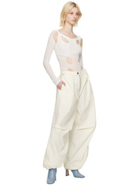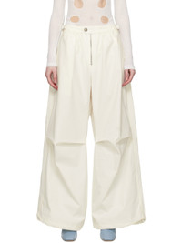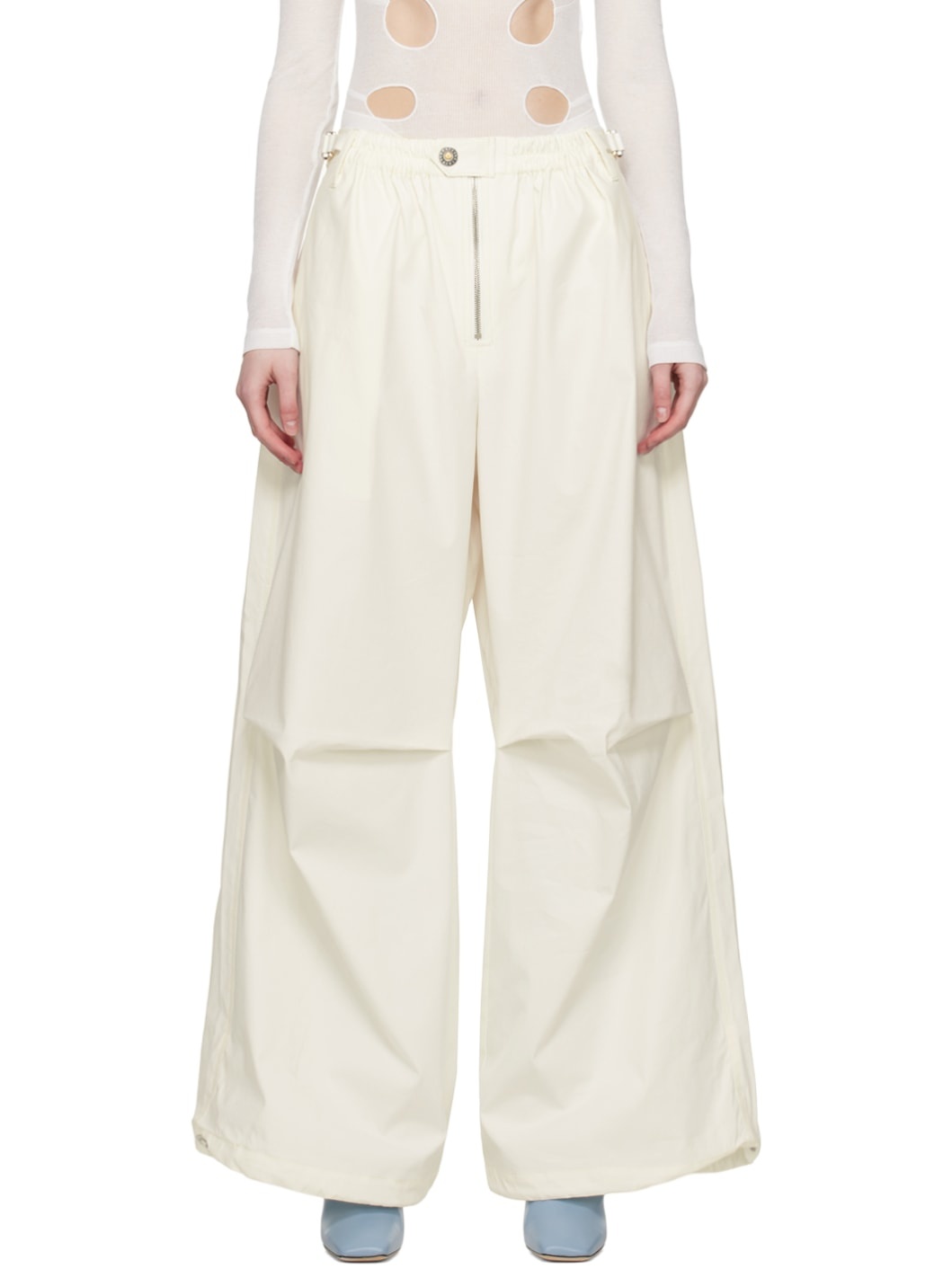 Oversized stretch cotton- and nylon-blend taffeta trousers. · Belt loops and cinch tab at elasticized waistband · Two-pocket styling · Exposed zip-fly · Bungee-style drawstring at cuffs · Logo-engraved silver-tone hardware Supplier color: Ivory Body: 60% cotton, 35% polyamide, 5% elastane. Lining: 50% cotton, 45% polyester, 5% elastane. Made in Poland 231417F087033