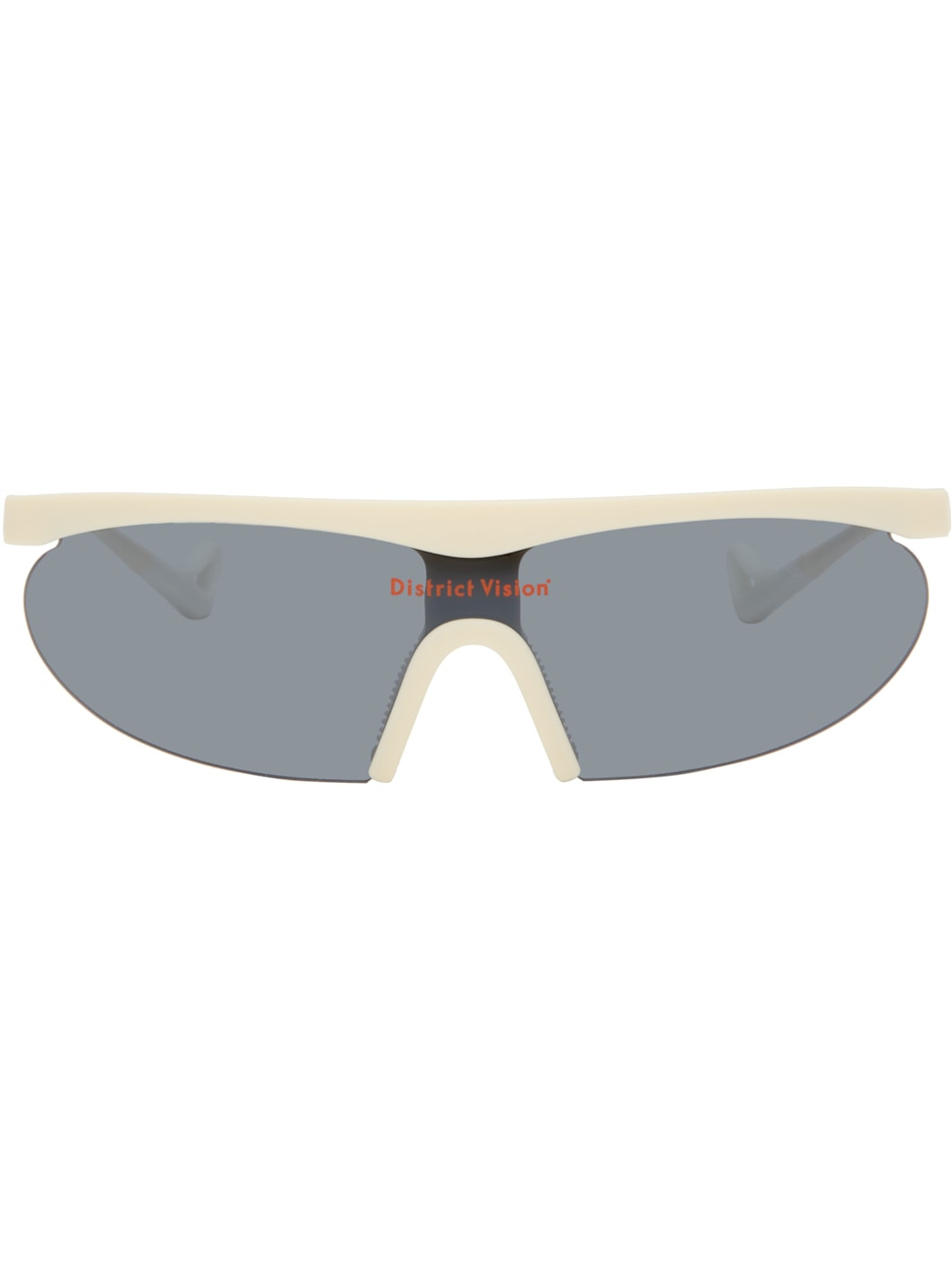 Shield-style semi-rimless acrylic-frame sunglasses. · Mirrored gray lens with D+ lens technology · 100% UVA/UVB protection · Integrated rubber nose pads · Logo printed at lens and temple · Eyewear chain-compatible rubber temple tips · Titanium hardware · Includes microfiber pouch · Size: 136 125 Supplier color: Limestone/D+ onyx mirror Acrylic, titanium. Made in Japan 252920F005014