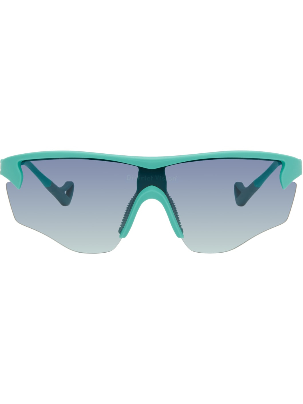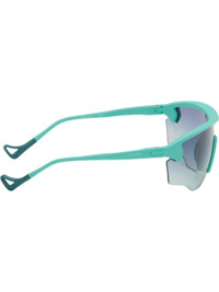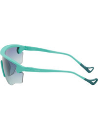 Shield-style semi-rimless acrylic-frame sunglasses. · Gradient gray lens with D+ lens technology · 100% UVA/UVB protection · Integrated rubber nose pads · Logo printed at lens and temple · Eyewear chain-compatible rubber temple tips · Includes microfiber pouch · Size: 140 125 Supplier color: Turquoise/D+ gray gradient Acrylic. Made in Japan 252920F005004