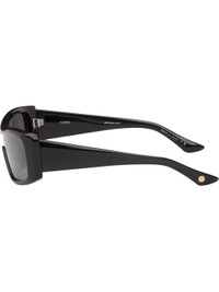 Handcrafted rectangular acetate-frame sunglasses in black. · Anti-reflective gray lens · 100% UVA/UVB protection · Logo etched at lens · Integrated nose pads · Inset logo hardware at temple tip · Core wires · Includes case · Size: 127.140 Supplier color: Black glass Acetate. Made in Japan 252789M134012
