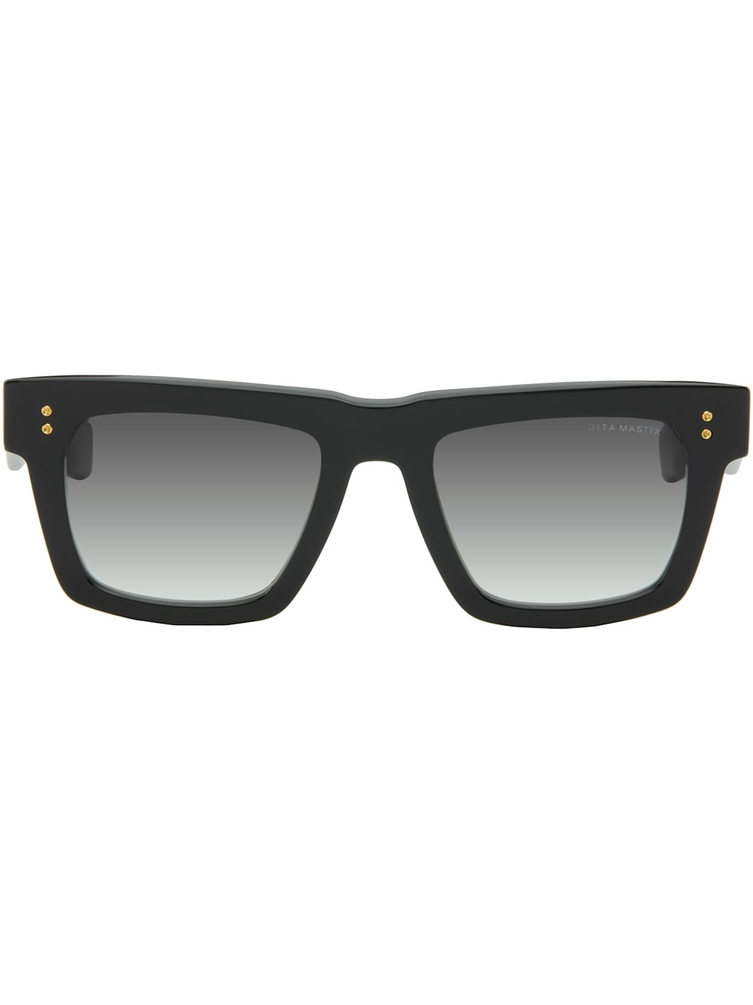 Handcrafted square acetate-frame sunglasses. · Anti-reflective CR-39 gray lenses · Logo etched at lens · 100% UVA/UVB protection · Integrated nose pads · Rivets at face and temples · Inset logo hardware at temple tip · Includes case · Size: 54.21 145 Supplier color: Black Acetate. Made in Japan 252789M134027