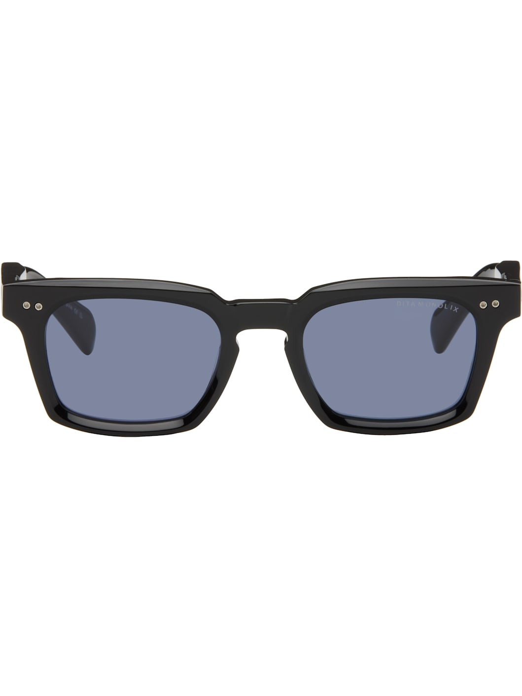 Handcrafted square acetate-frame sunglasses. · Logo etched at lens · Anti-reflective CR-39 gray lenses · 100% UVA/UVB protection · Integrated nose pads · Inset logo at temple tips · Includes case · Size: 50.22 148 Supplier color: Black Acetate. Made in Japan 252789M134045