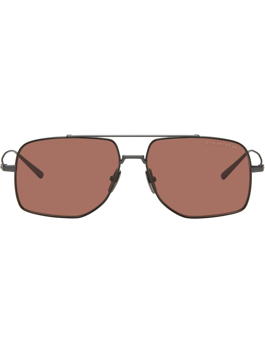 Handcrafted aviator-style titanium-frame sunglasses. · Logo etched at lens · Anti-reflective CR-39 red lenses · 100% UVA/UVB protection · Adjustable titanium nose pads · Inset black enamel at temple tips · Logo embossed at temple tip · Includes case · Size: 60.15 145 Supplier color: Black iron/Black Titanium, enamel. Made in Japan 252789M134051