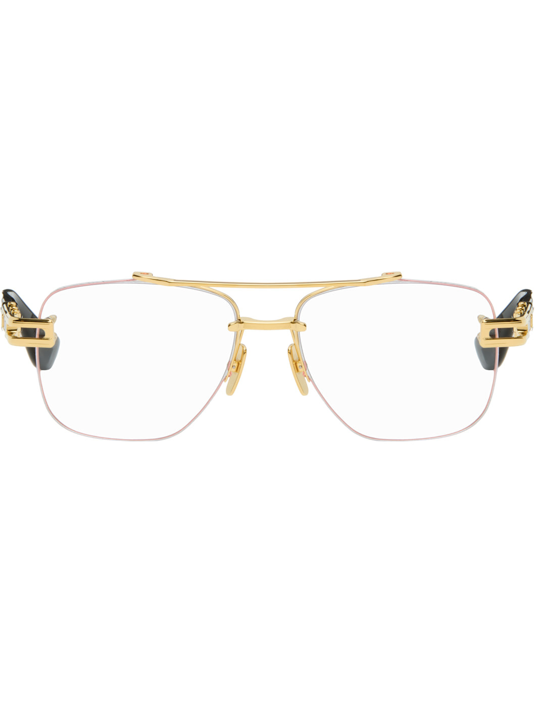 Handcrafted aviator-style titanium- and acetate-frame optical glasses. · Adjustable titanium nose pads · Double bridge · Fluted detailing at temples · Inset logo at temple tip · Includes case · Size: 57.16 145 Supplier color: Yellow gold/Black Titanium, acetate. Made in Japan 252789M133013
