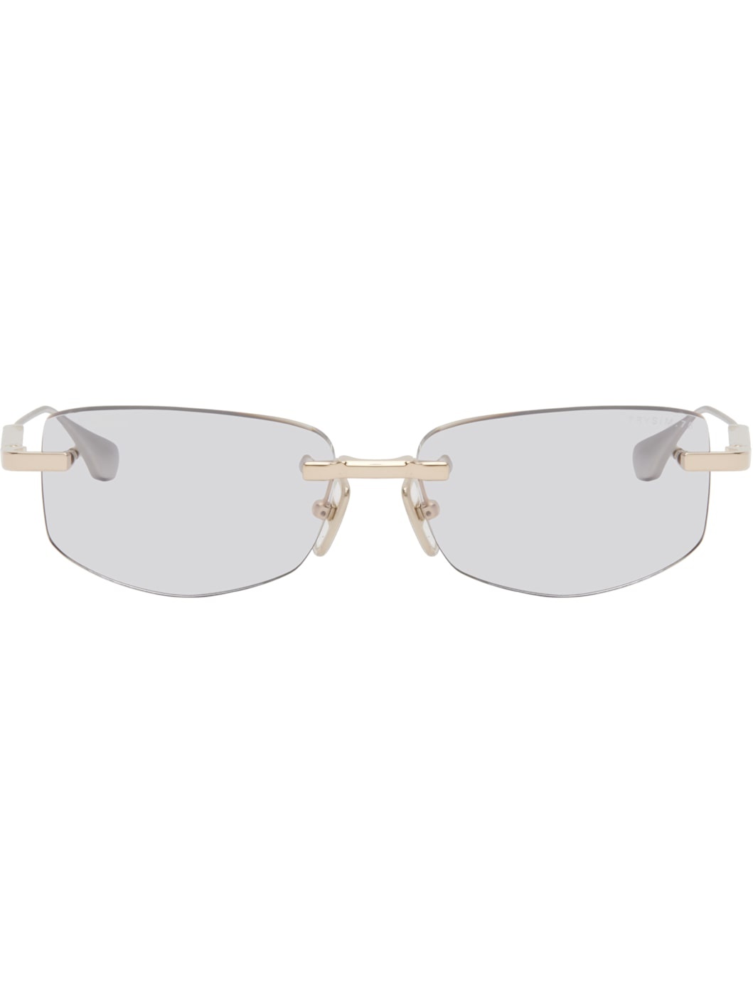 Rectangular and rimless titanium-frame optical glasses in gold tone. · Handcrafted · Adjustable silicone nose pads · Fluted detailing at temples · Silver-tone temple tips · Inset logo hardware at single tip · Includes case · Size: 56.15 143 Supplier color: White gold Titanium. Made in Japan 252789M133002