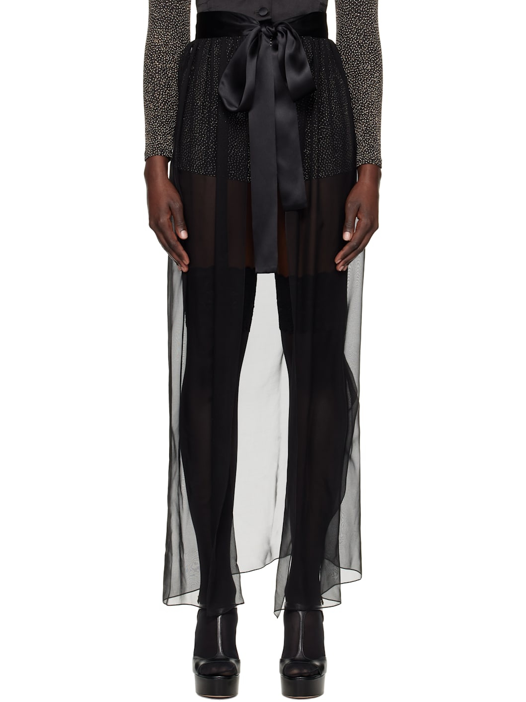Sheer silk chiffon maxi skirt. · Integrated self-tie belt at satin waistband · Central vent at front Supplier color: Black 100% silk. Made in Italy 242003F093000