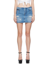 Non-stretch denim skirt. Distressing and fading throughout. · Five-pocket styling · Zip-fly · Logo patch at coin pocket · Belt loops at front and back · Contrast stitching in tan · Logo-engraved silver-tone hardware Supplier color: Denim 100% cotton. Made in Italy 232003F090006