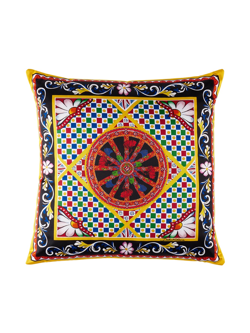 Square cotton duchesse cushion in multicolor. - Graphic printed throughout - Zip closure at base - Removable insert - H18 x W18 Supplier color: Multicolor