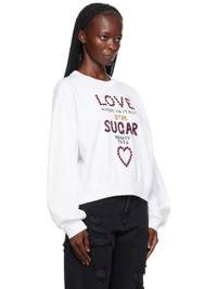 French terry sweatshirt. · Rib knit crewneck, hem, and cuffs · Crystal-cut text and graphic at front · Text printed at front · Dropped shoulders Supplier color: Love/Ottico Body: 100% cotton. Trim 1: 75% polyurethane, 25% resin. Trim 2: 95% cotton, 5% elastane. Made in Italy 232003F098000