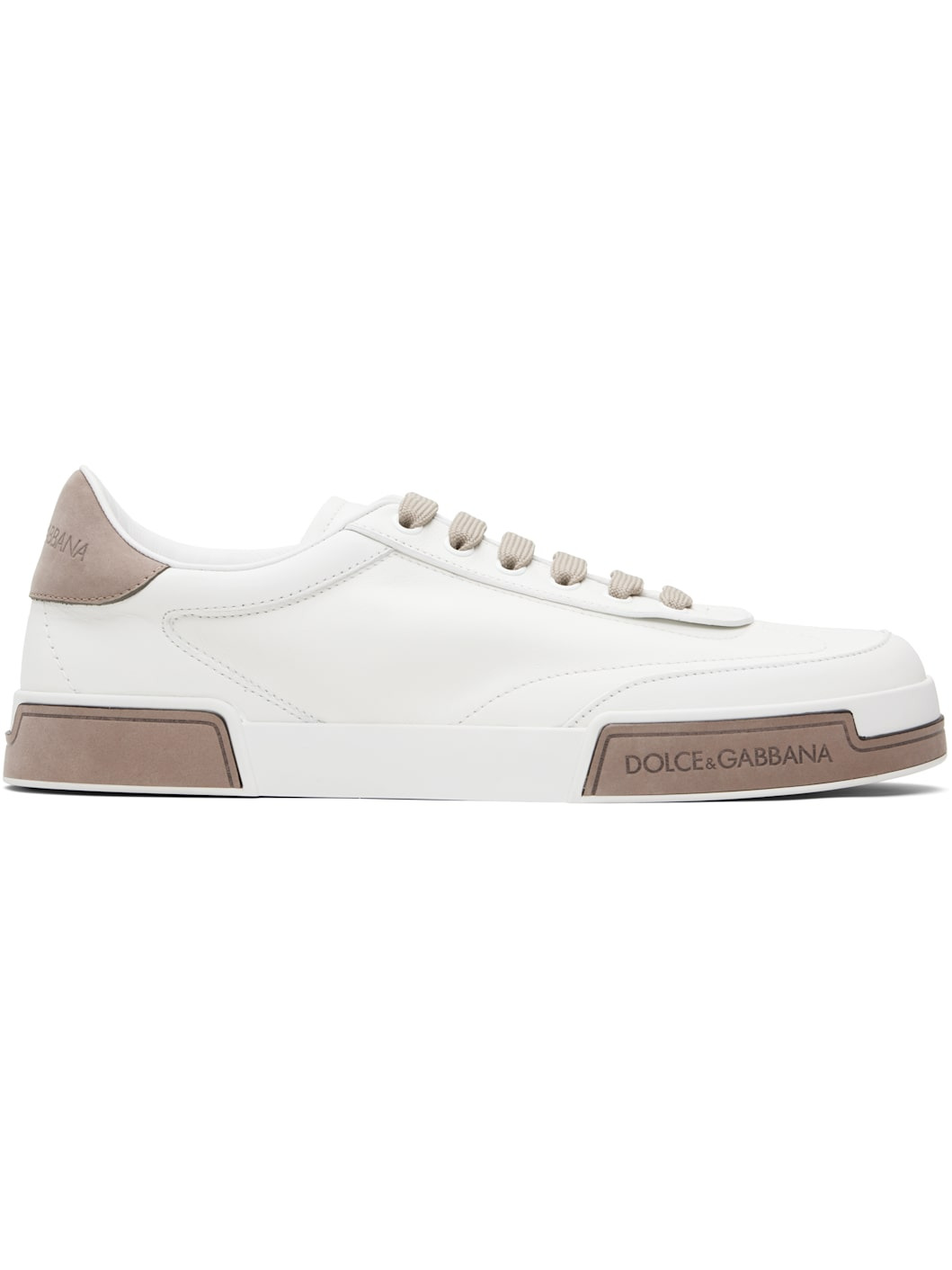 White & Taupe Calfskin Portofino Yacht Sneakers