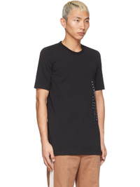 Short sleeve cotton-blend rib knit T-shirt in black featuring bonded graphic at front. Crewneck collar. Supplier color: Black 93% cotton, 7% polyurethane. Made in Japan 221038M213012
