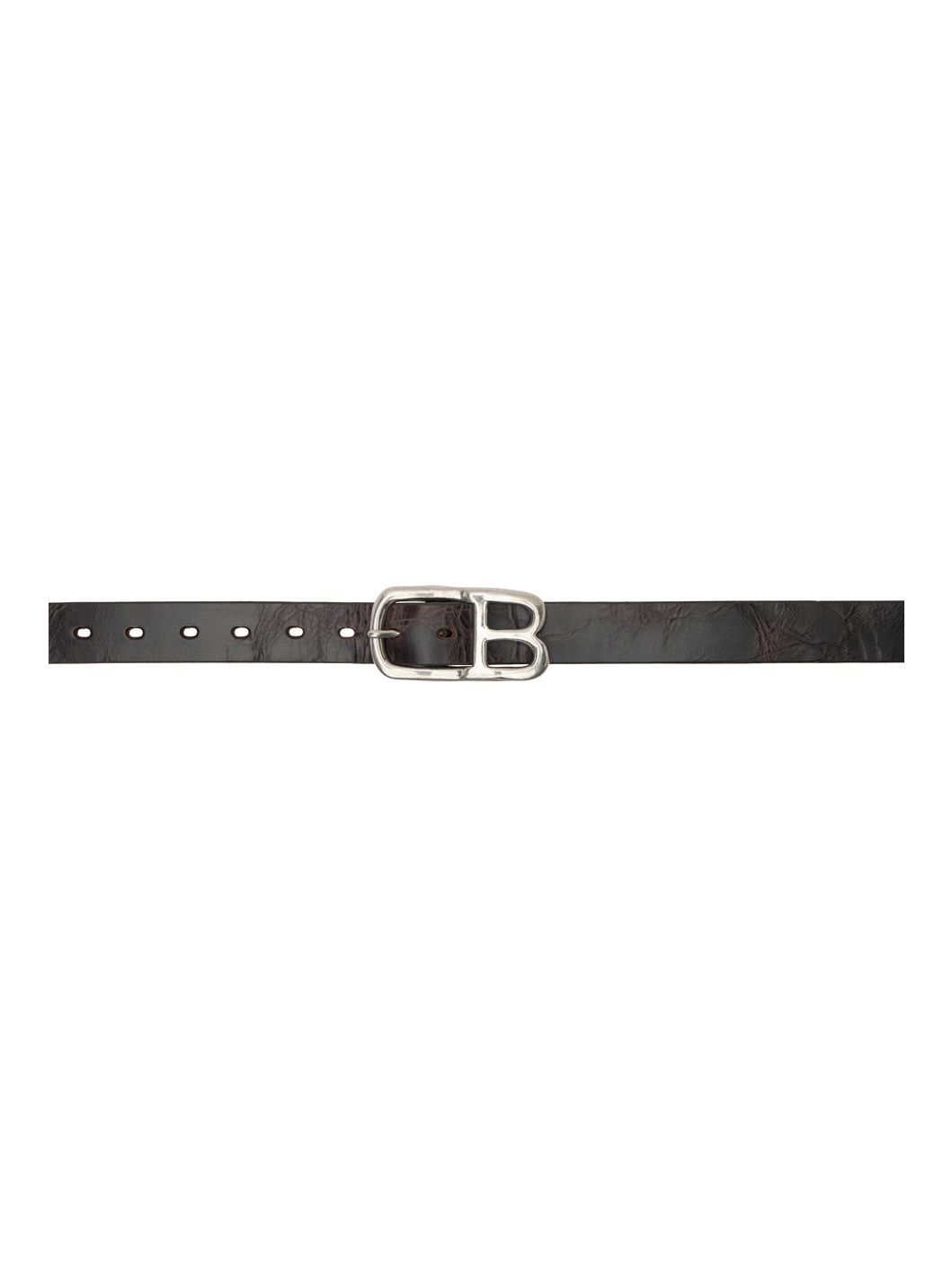 Grained leather belt in brown. Smudging throughout. · Logo hardware at pin-buckle fastening · W1" Supplier color: Dark brown Leather. Made in Japan 242038M131000