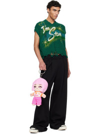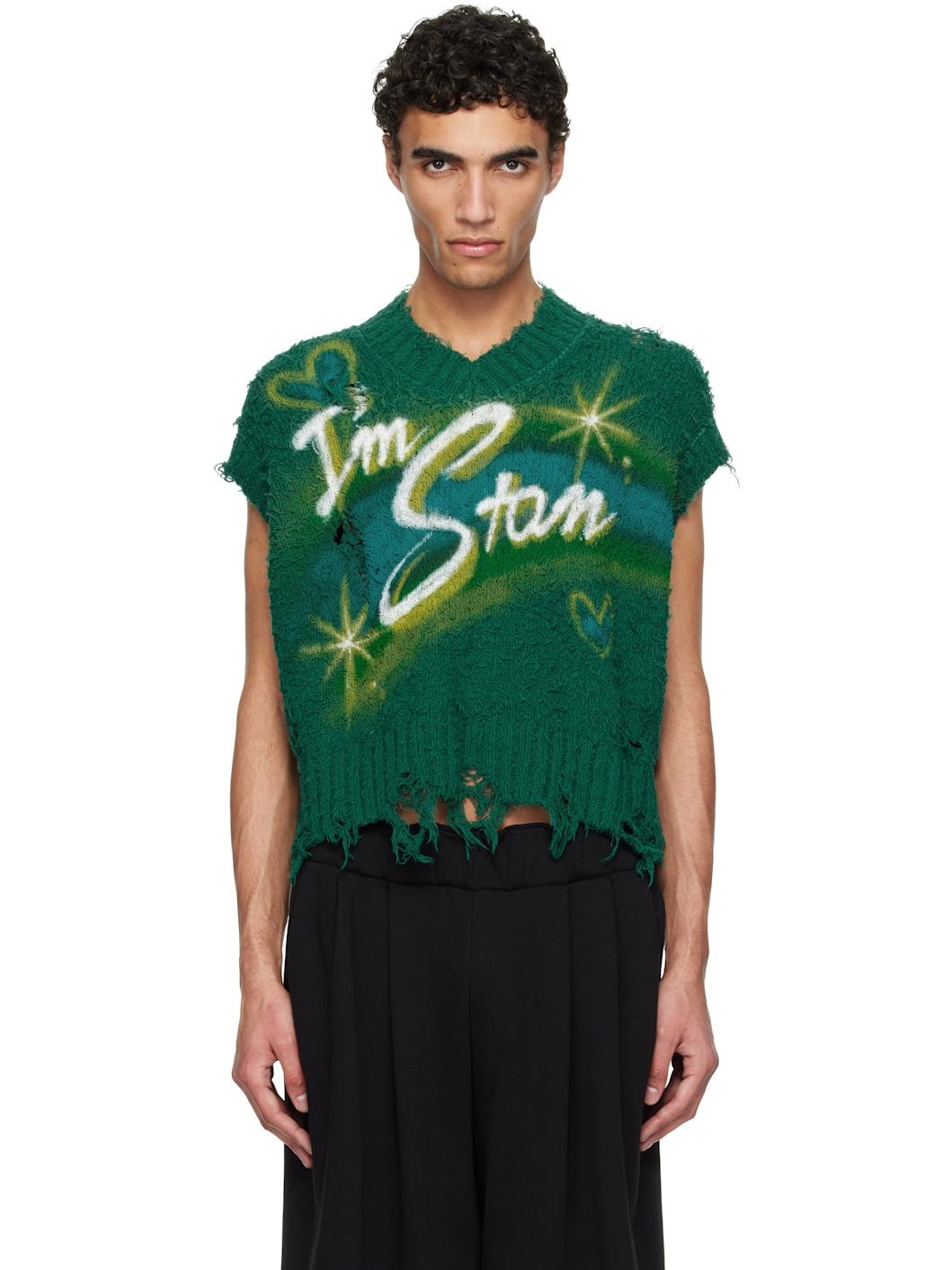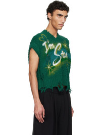Knit recycled cotton vest. Distressing throughout. - Rib-knit crewneck, hem, and armscyes - Text and graphic printed at front Supplier color: Green