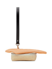 Sculptural grained leather pouch in orange and off-white. · Detachable wristlet strap · Textured detailing at top · Gold-tone logo stamp at base · Zip closure · H1.75" x W7" x D1.5" Part of the Doublet x beta post collaboration. Supplier color: Salmon Leather. Made in Japan 242038M170001