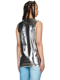 Sleeveless coated jersey tank top in silver-tone. · Embroidered applique at crewneck collar · Vented side-seams Supplier color: Silver 100% polyester. Made in Japan 221038F111003