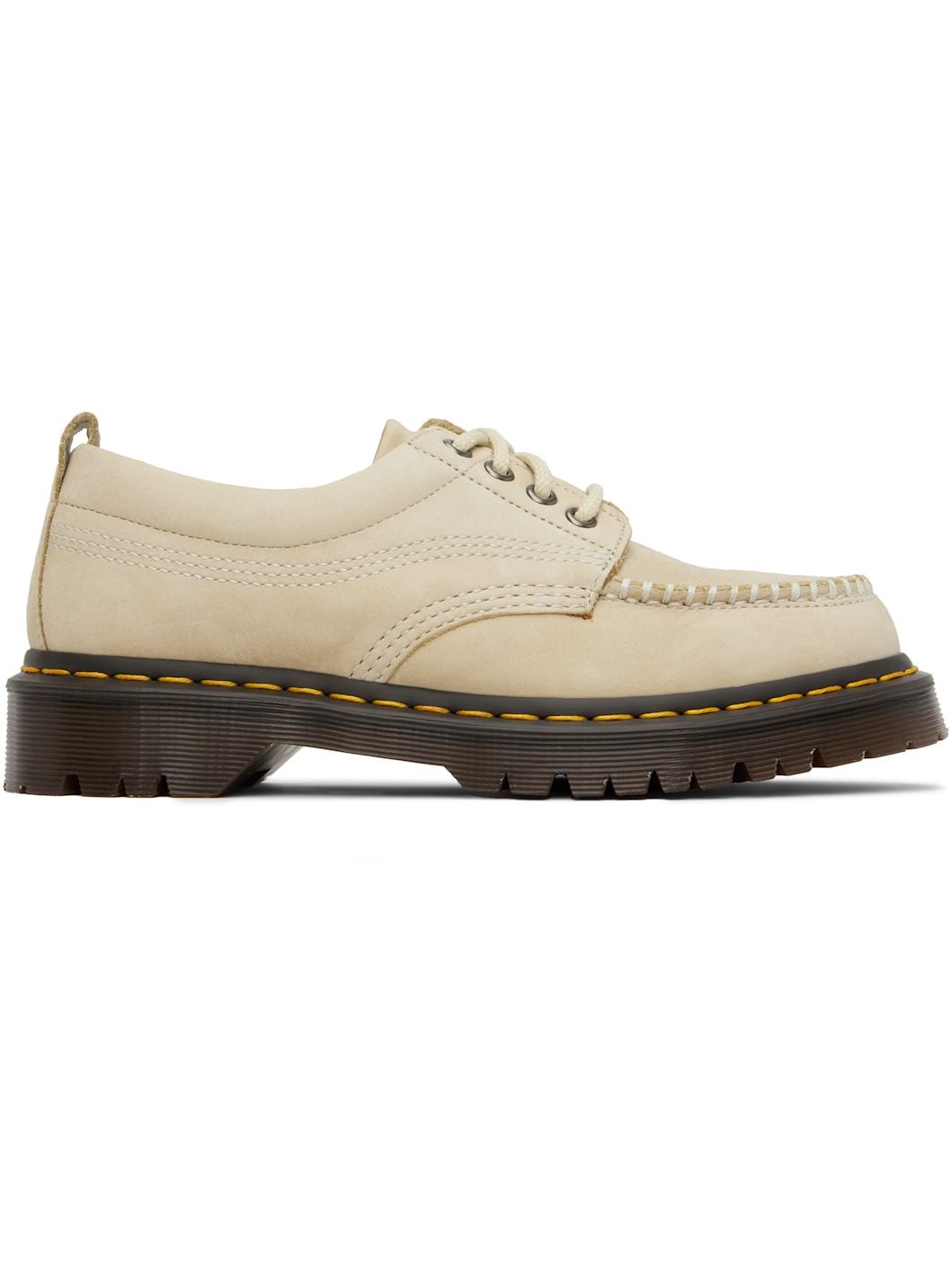 Nubuck derbys in beige. · Blanket stitching at moc toe · Lace-up closure · Padded collar · Pull-loop at heel collar · Buffed leather lining · Yellow topstitching at heat-sealed Goodyear welt · Treaded Air Cushion rubber sole Supplier color: Light tan Upper: leather. Sole: rubber. Made in Lao Peoples Republic 252399M225002