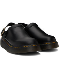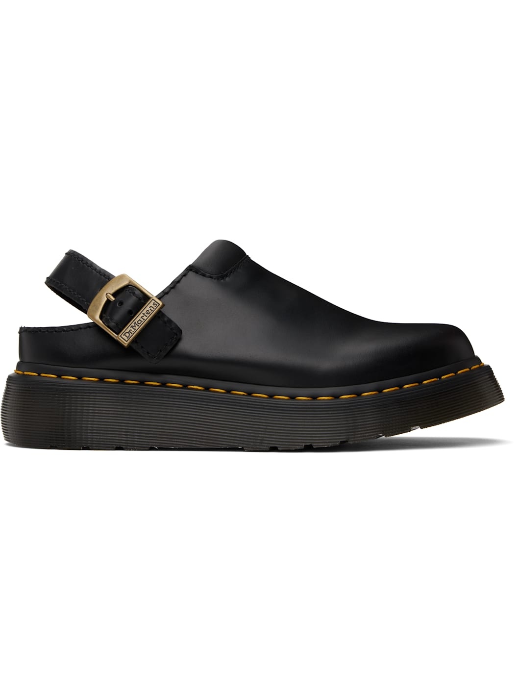 Waxed aniline leather slip-on loafers in black. · Convertible pin-buckle slingback strap · Grained leather trim at padded collar · Suede lining · Yellow stitching at heat-sealed Goodyear welt · Treaded rubber platform sole · Logo-engraved antiqued gold-tone hardware · Platform: H1.5" Supplier color: Black atlas Upper: leather. Sole: rubber. Made in Lao Peoples Republic 251399M231019