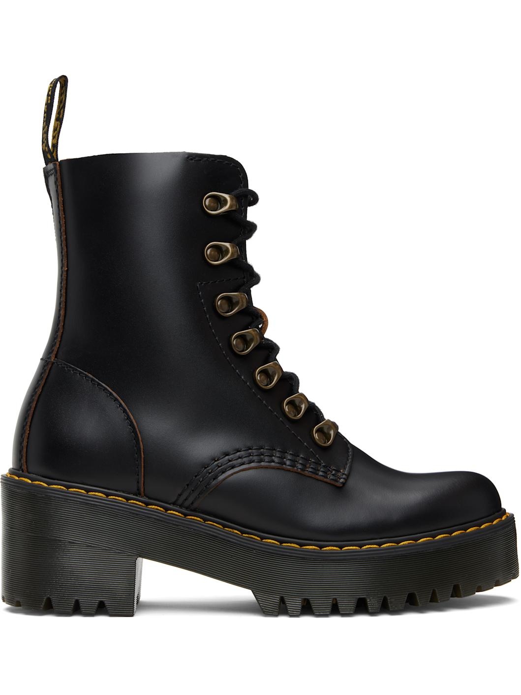 Ankle-high buffed leather boots. · Lace-up closure · Pull-loop at heel collar · Suede lining · Yellow topstitching at heat-sealed Goodyear welt · Treaded Air Cushion rubber sole · Heel: H2.25" Supplier color: Black vintage smooth Upper: leather. Sole: rubber. Made in Viet Nam 252399F113002