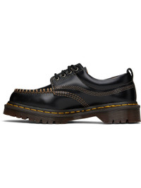 Buffed leather derbys in black. · Blanket stitching at moc toe · Lace-up closure · Padded collar · Pull-loop at heel collar · Yellow topstitching at heat-sealed Goodyear welt · Treaded Air Cushion rubber sole · Contrast stitching in beige Supplier color: Black analine Upper: leather. Sole: rubber. Made in Thailand 251399M225022