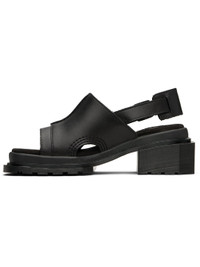 Buffed leather mules in black. · Open square toe · Pinched seam at vamp · Pin-buckle slingback strap · Cutout at sides · Logo-printed padded suede footbed · Rubber block heel · Cemented treaded Air Cushion rubber sole · Logo-engraved black hardware · Heel: H2" Supplier color: Black Upper: leather. Sole: rubber. Made in Viet Nam 251399F125001