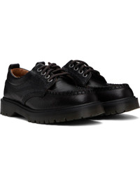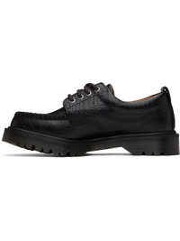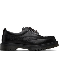 Wax-coated and croc-embossed leather derbys in brown. · Moc toe · Lace-up closure · Padded collar · Pull-loop at heel collar · Buffed leather and suede lining · Serrated detailing at heat-sealed Goodyear welt · Treaded Air Cushion rubber sole Supplier color: Dark brown Upper: leather. Sole: rubber. Made in Thailand 252399F120004