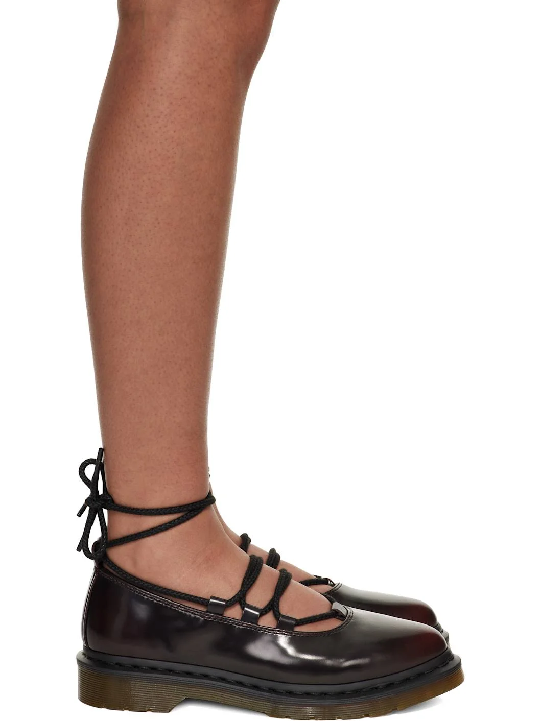 Polished leather loafers. · Pointed toe · Open vamp · Lace-up closure extends to ankle · Buffed leather lining · Heat-sealed Goodyear welt · Treaded Air Cushion rubber sole Supplier color: Cherry Red - Arcadia Upper: leather. Sole: rubber. Made in Lao Peoples Republic 261399F118003