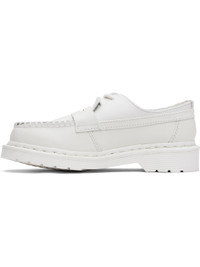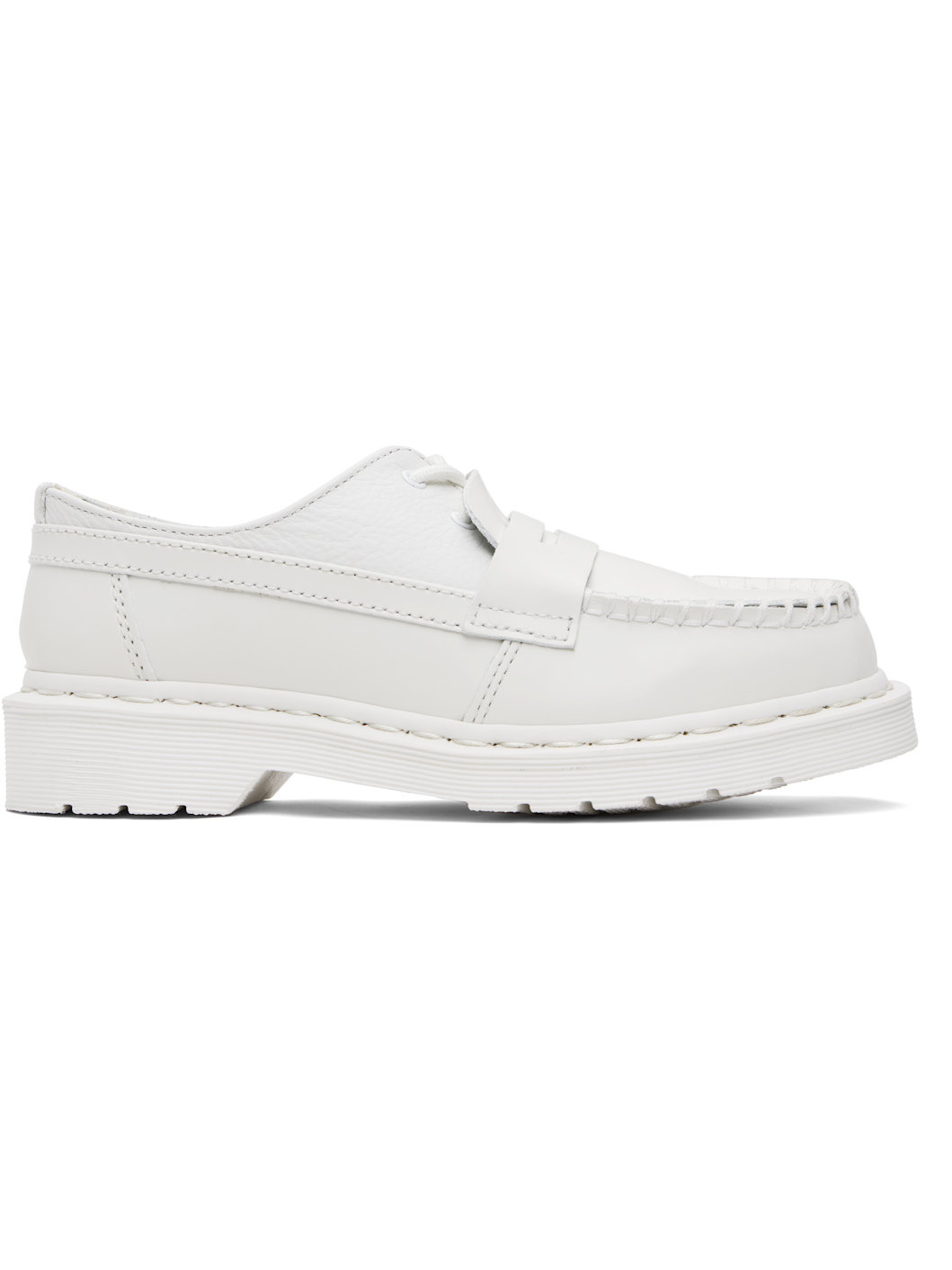 Ankle-high grained and buffed leather derbys. · Blanket stitching at moc toe · Strap with cutout at vamp · Lace-up closure · Buffed leather lining · Heat-sealed Goodyear welt · Treaded Air Cushion rubber sole Part of the MM6 Maison Margiela x Dr. Martens collaboration. Supplier color: White/Optical white Upper: leather. Sole: rubber. Made in Thailand 252188M225000