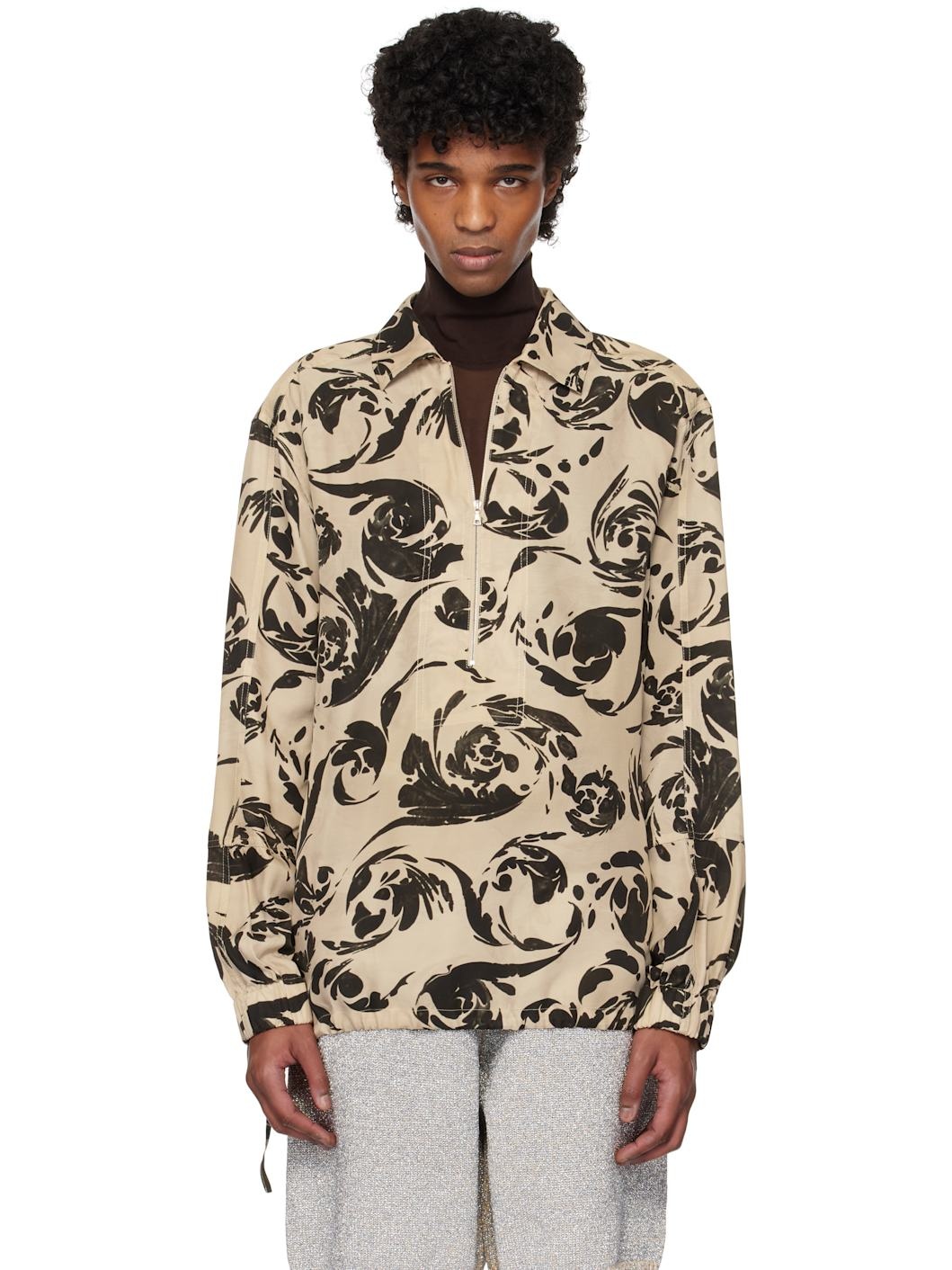 Viscose satin shirt. Graphic pattern printed throughout. · Paneled construction · Spread collar · Half-zip closure · Drawstring at hem · Elasticized cuffs Supplier color: Black 100% viscose. Made in Bulgaria 251358M192017