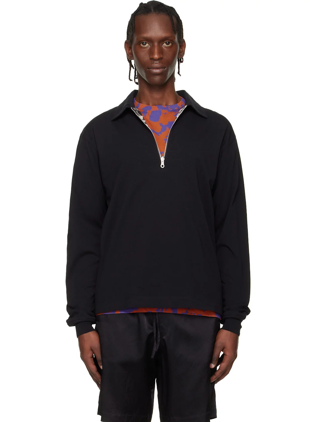 Reversible cotton jersey polo. Reverse in black cotton jersey. · Graphic pattern printed throughout · Spread collar · Half-zip closure · Dropped shoulders · Rib-knit cuffs Supplier color: Black 100% cotton. Made in Turkey 261358M212029