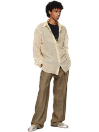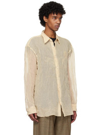 Semi-sheer crinkled plain-woven cotton- and silk-blend shirt. Metallic thread detailing throughout. · Spread collar · Button closure · Shirttail hem · Pleats at adjustable single-button barrel cuffs Supplier color: Natural 59% cotton, 31% metallic fiber, 10% silk. Made in Portugal 251358M192092