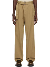 Beige Straight Belted Trousers