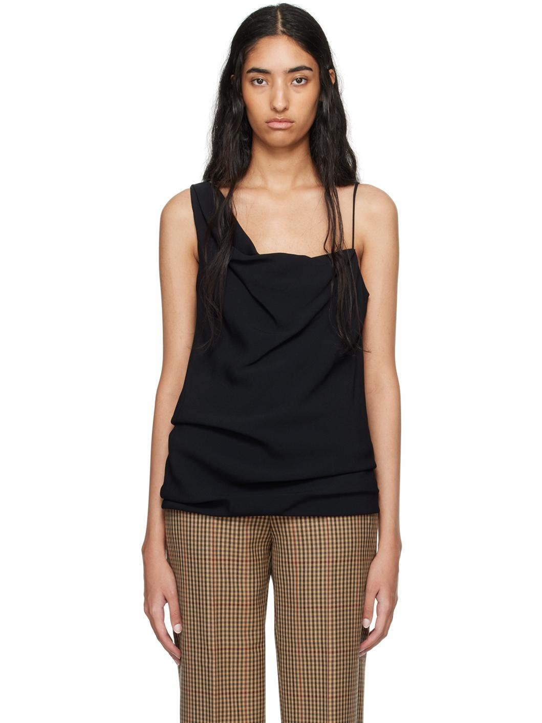 Acetate-blend crepe top. Draping throughout. · Asymmetric construction · Modified cowl neck · Fixed shoulder strap and spaghetti strap · Full viscose twill lining Supplier color: Black Body: 73% acetate, 27% viscose. Lining: 100% viscose. Made in Poland 242358F111003