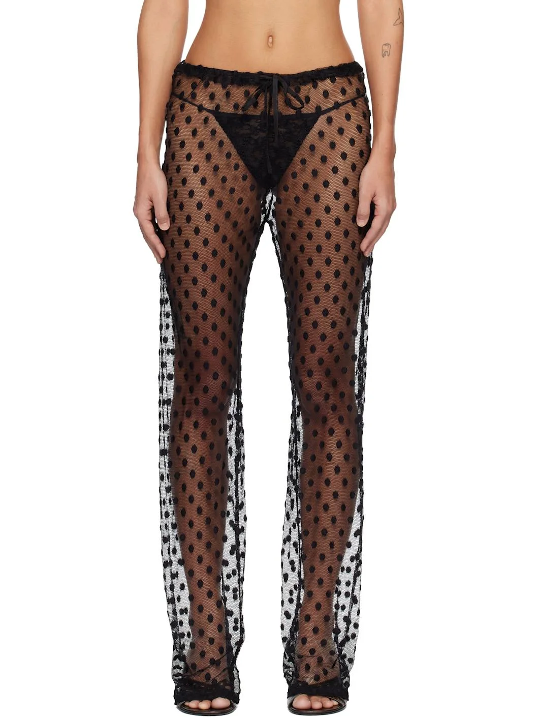 Sheer cotton- and nylon-blend mesh trousers. · Polka-dot pattern throughout · Low-rise · Drawstring at elasticized waistband Supplier color: Black 66% cotton, 34% nylon. Made in Tunisia 261358F087023