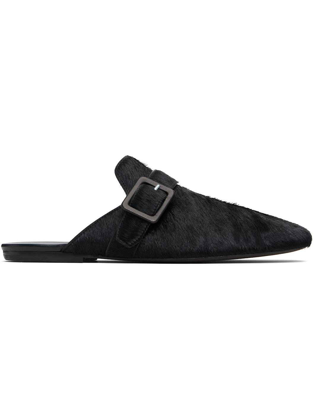 Hair-on-leather slip-on loafers. · Square toe · Pin-buckle strap at vamp · Buffed leather lining · Leather sole with rubber injections Supplier color: Black Upper: leather. Sole: leather, rubber. Made in Italy 252358M231014