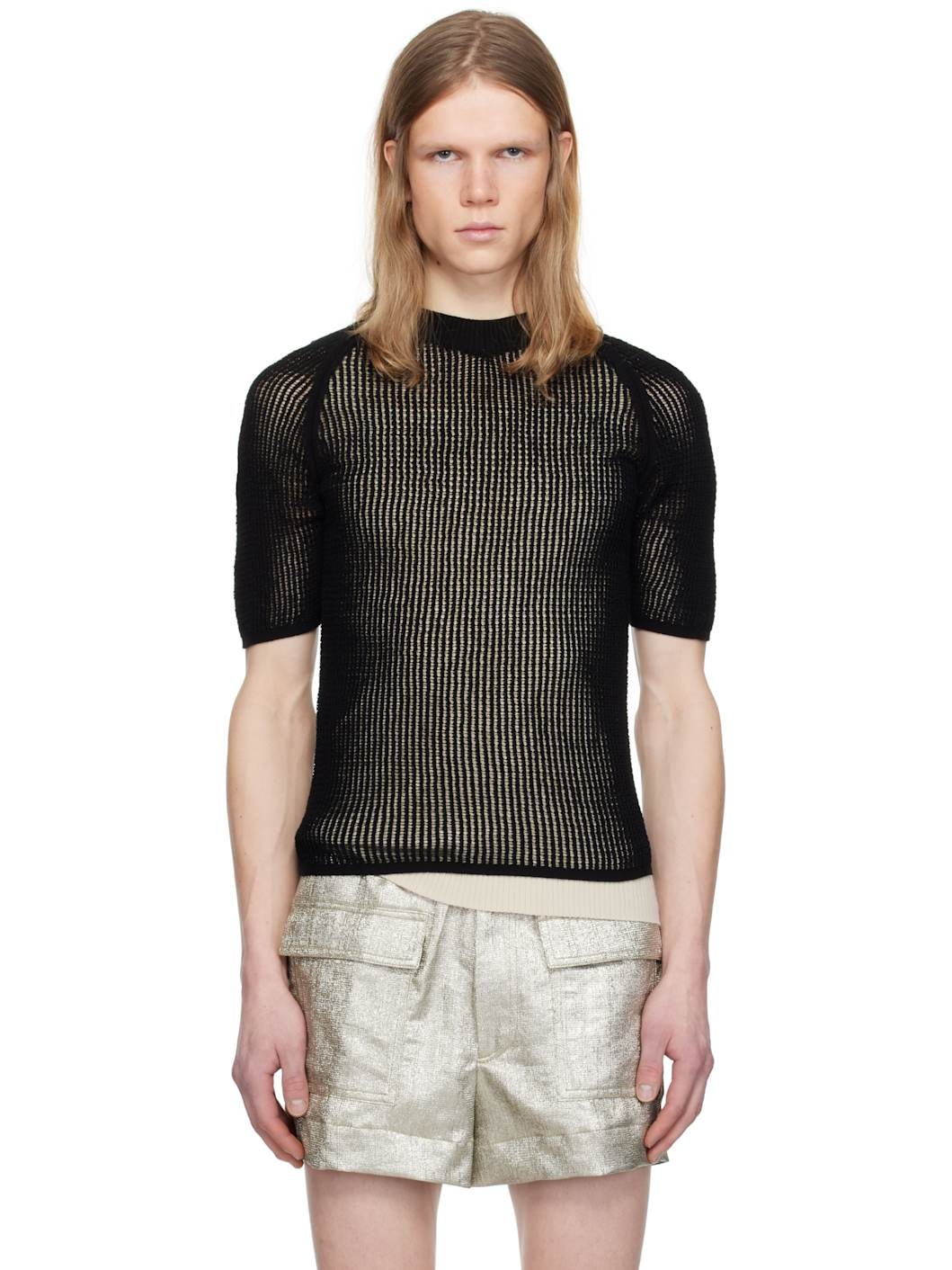 Open-knit viscose- and cotton-blend sweater. · Rib-knit crewneck, hem, and cuffs · Raglan sleeves Supplier color: Black 53% viscose, 25% cotton, 22% polyester. Made in Belgium 251358M213000