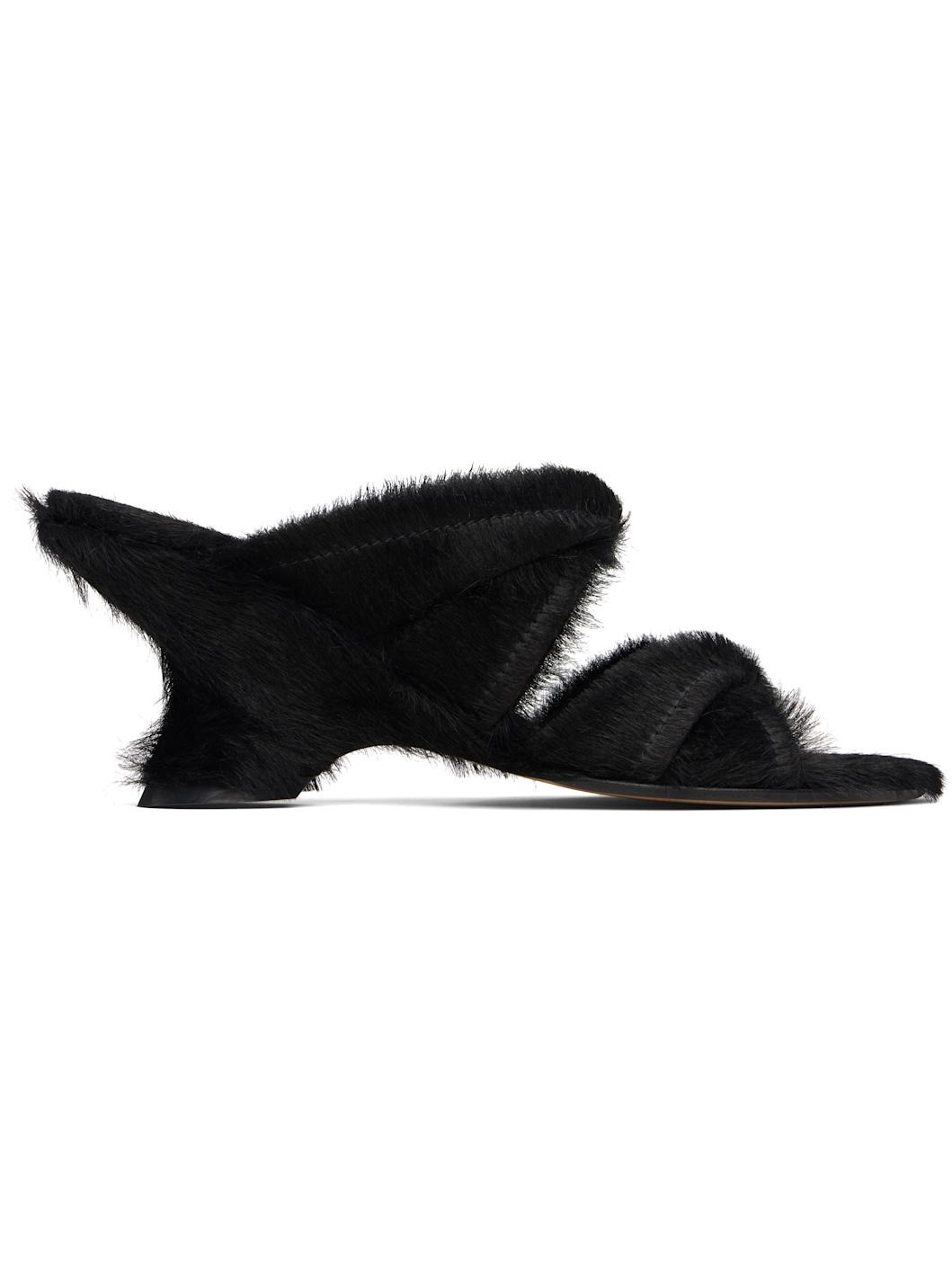 Black Ponyhair Mule Heeled Sandals