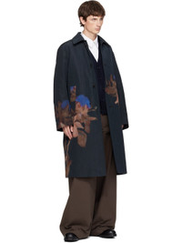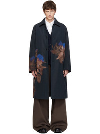 Plain-woven wool-blend coat. · Floral graphics printed throughout · Spread collar · Button closure · Welt pockets at waist · Central vent at back hem · Welt pockets at interior · Full quilted twill lining Supplier color: Black Body: 62% wool, 38% polyester. Lining: 35% cotton, 33% viscose, 31% polyester, 1% polyamide. Made in Romania 252358M176011