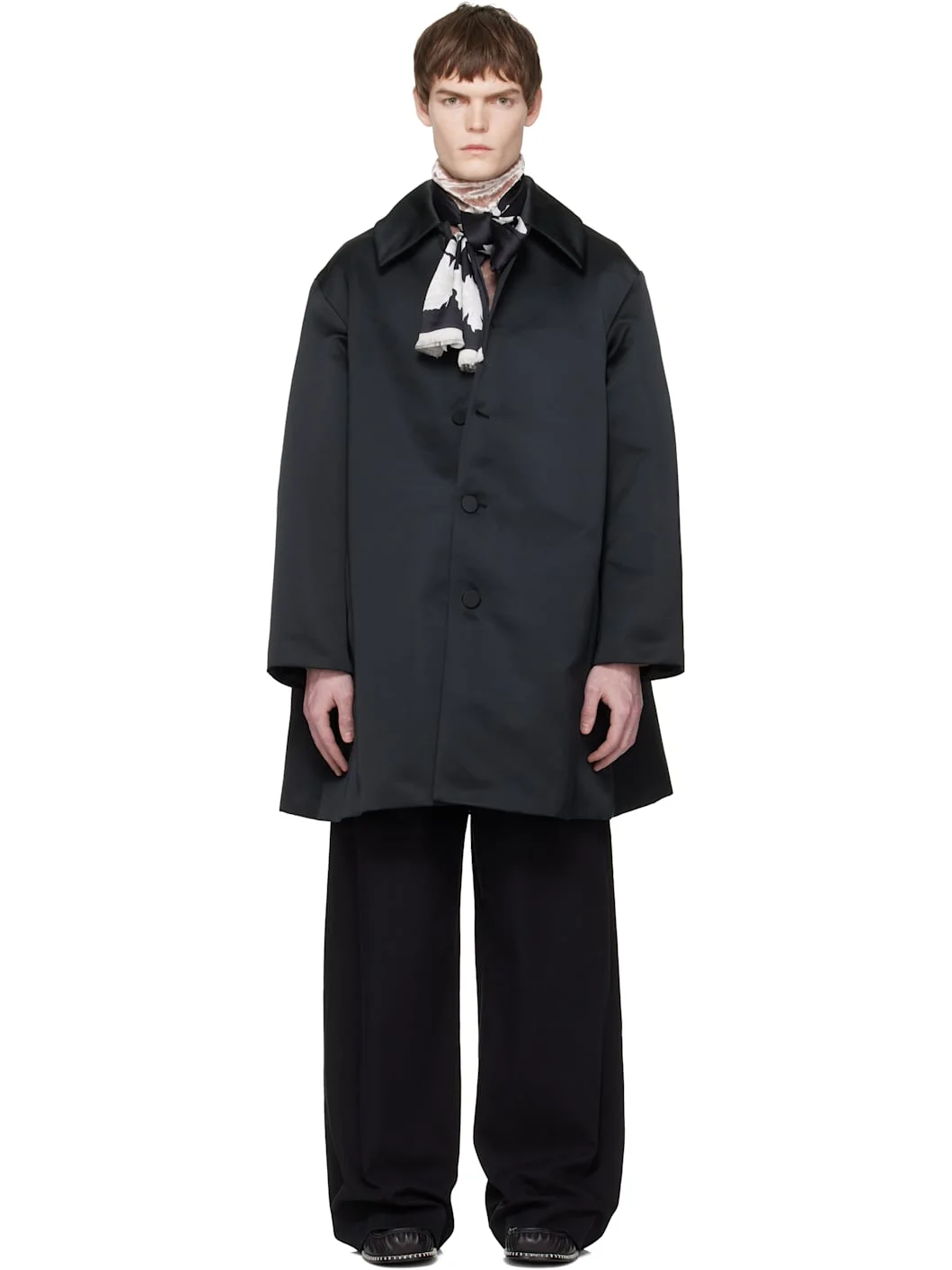Satin coat. · Spread collar · Button closure · Seam pockets at waist · Welt pocket at interior · Full twill lining Supplier color: Black Body: 100% polyester. Lining: 100% curpo. Made in Poland 261358M176011