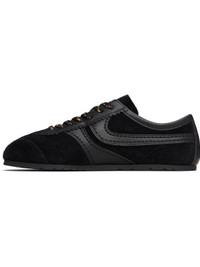 Low-top calfskin suede and buffed calfskin sneakers. · Serrated edge at vamp · Lace-up closure · Logo printed at tongue · Treaded rubber sole Supplier color: Black Upper: calfskin. Sole: rubber. Made in Italy 252358F128000