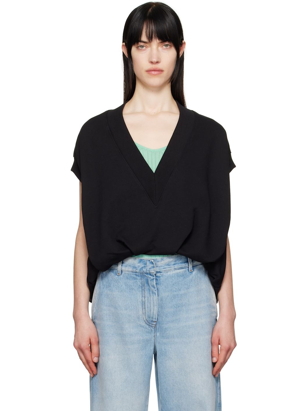 Oversized double-faced cotton jersey vest. · Rib-knit plunging V-neck, hem, and armscyes · Pleats at bubble hem Supplier color: Black 100% cotton. Made in Turkey 251358F100002