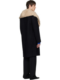 Wool-blend melton coat. · Detachable wool-blend fleece trim at collar · Notched lapel · Button closure · Flap pockets at front · Central vent at back hem · Welt pocket at interior · Full satin lining Supplier color: Black Body: 70% wool, 30% polyamide. Trim: 67% wool, 18% mohair, 14% cotton, 1% polyamide. Lining: 60% cupro, 40% cotton. Made in Romania 252358M176030