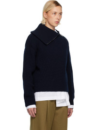 Rib-knit wool turtleneck. · Turtleneck converts to foldover neck · Offset zip closure · Dropped shoulders Supplier color: Black 100% wool. Made in Belgium 252358F099008