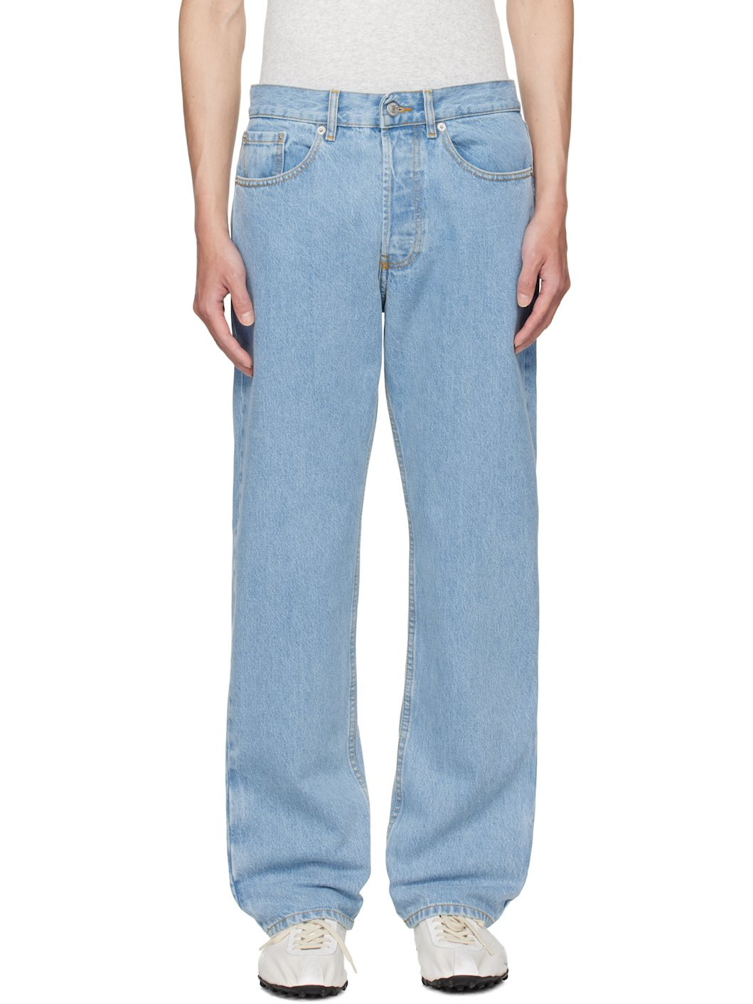 Non-stretch denim jeans. · Fading throughout · Belt loops · Five-pocket styling · Button fly · Pinched leather logo patch at back waistband · Logo-engraved silver-tone hardware · Contrast stitching in tan Supplier color: Light blue 100% cotton. Made in Tunisia 252358M186023