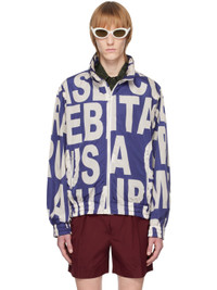 Nylon-blend taffeta jacket. Graphic pattern printed throughout. · Stand collar · Bungee-style drawstring at stowaway hood · Zip closure · Zip pockets · Elasticized hem and cuffs · Full satin lining · Silver-tone hardware Supplier color: Blue Body: 75% polyamide, 25% polyester. Lining: 50% viscose, 50% cupro. Made in Hungary 231358M180001