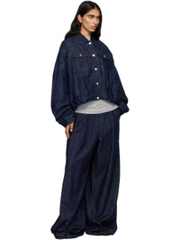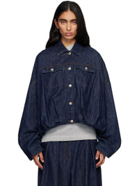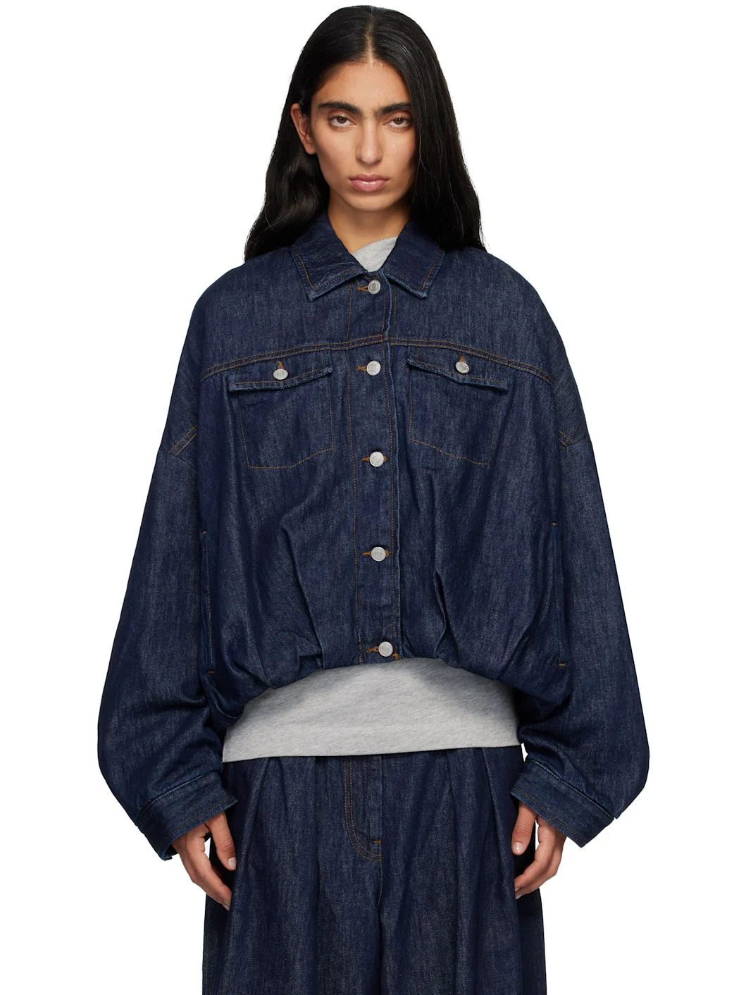 Non-stretch denim jacket. · Spread collar · Button closure · Flap pockets at chest · Welt pockets at waist · Pleats at partially elasticized bubble hem · Dropped shoulders · Buttoned barrel cuffs · Welt pocket at interior · Full quilted twill lining · Logo-engraved silver-tone hardware · Contrast stitching in tan Supplier color: Indigo 100% cotton. Made in Tunisia 252358F060005