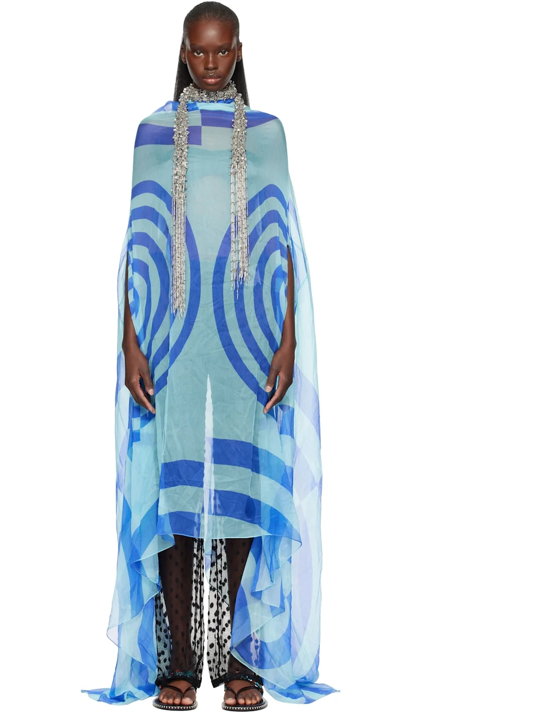 Blue Silk Cape Maxi Dress