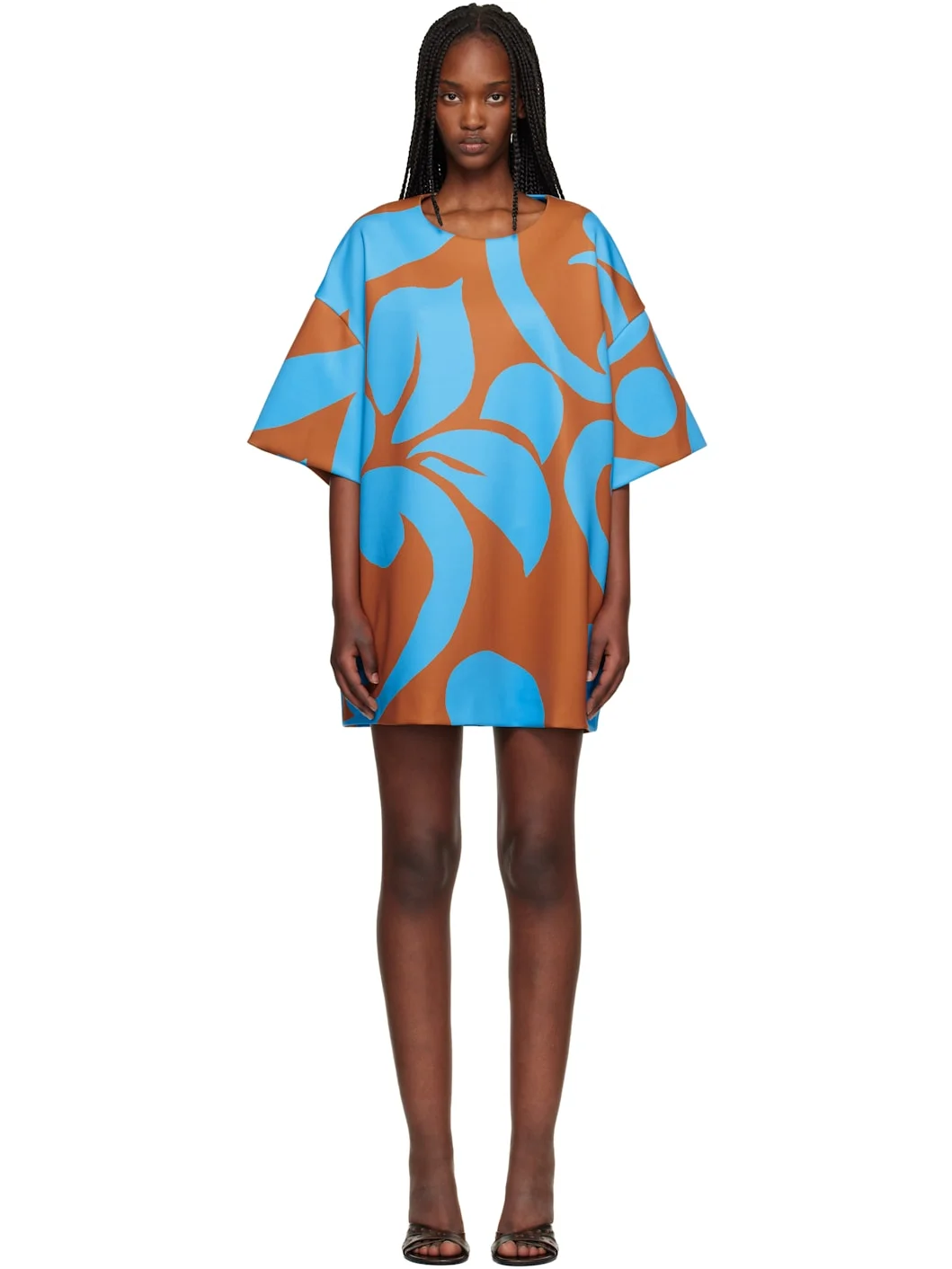 Stretch jersey minidress. · Floral pattern printed throughout · Round neck · Dropped shoulders · Full satin lining Supplier color: Turquoise Body: 85% polyester, 15% elastane. Lining: 100% viscose. Made in Bulgaria 261358F052002